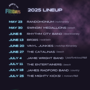 Now in its 11th season, Amp’d Up Fridays was previously known as Beachin’ Fridays, which brought the popular beach music scene to Mauldin. The series was rebranded in 2023 as the music roster expanded to include additional music genres, and it continues to draw people from the Upstate and beyond for nights filled with live music, dancing and delicious food.